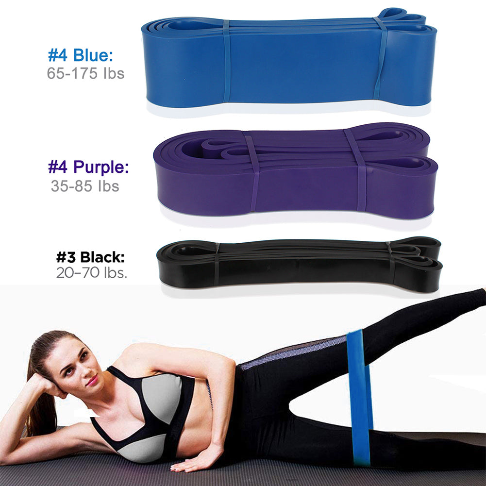 - Purple (35-85lbs): Moderate to severe resistance for moderate fitness exercises and strength training. Also suitable as medium support for pull-ups.